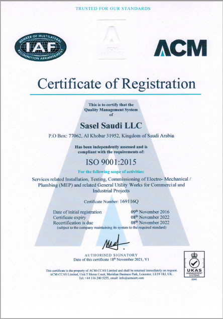 Sasel Saudi LLC. was founded in 2013 in Kingdom of Saudi Arabia by Sasel Co. Inc. “Our main activities, in the field of Building Construction, Electromechanical Services, Fit out and interior finishes ranges, from design to the operation and maintenance stage of the related work.”